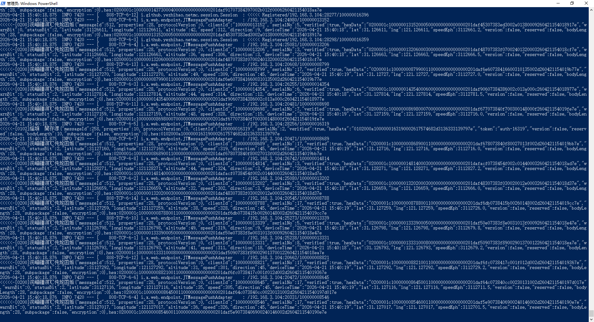 - 峰值业务吞吐 TPS:3356 TPS(代表系统每秒可稳定处理超 3300 条国标 JT808 车载报文,含定位上报、心跳、报警、车辆信息上报等全类型业务消息)